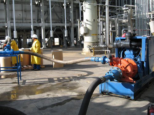 FIELDSERVICE, C.A. cuenta con equipos de bombeo hasta capacidad de 4.800 gpm y 120 psig, para trasegar aguas aceitosas, hidrocarburos, soluciones químicas, etc., desde